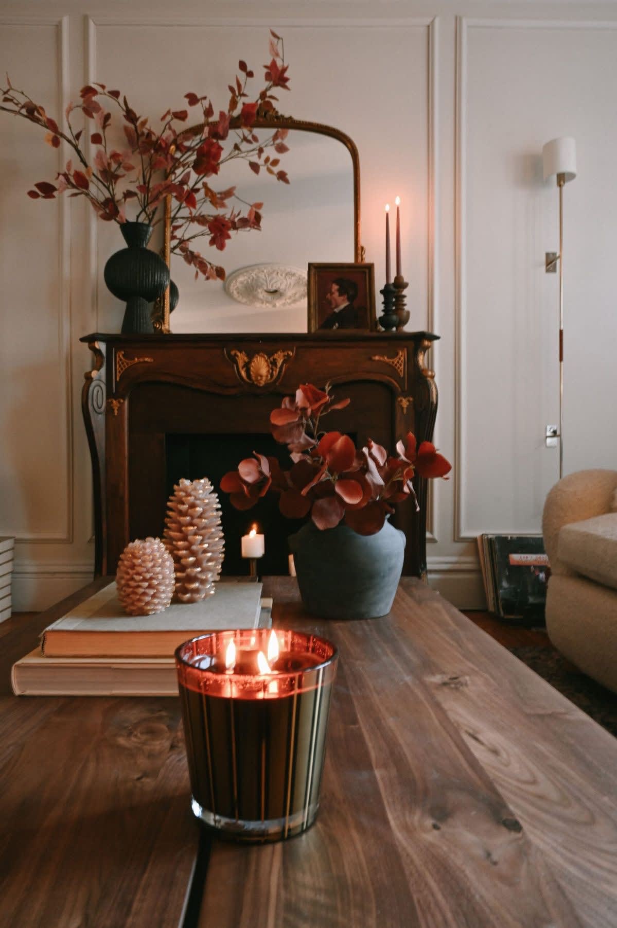 Layering different textures is a great way to create warmth and an inviting space. For example, you could layer a faux fur throw over a cable knit blanket on your couch. Or, you could place a woven basket filled with pumpkins and gourds on your coffee table.